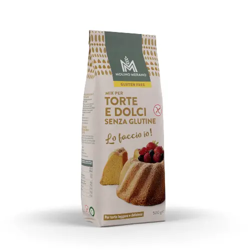 Esclusiva miscela con farina di riso e mais, ideale per la preparazione di una varietà di prodotti da forno dolci, tra cui torte, muffin, plumcake e pan di spagna.